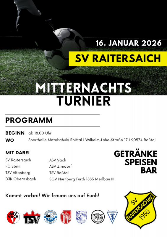 16.01.2026 / 18:00 Uhr / 1.Mannschaft - 15. Hallen-Mitternachtsturnier SV Raitersaich